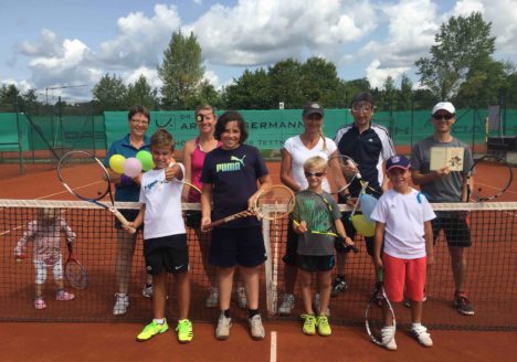 Klein gegen Groß-Jux-Turnier Kleine Besetzung aber Riesenspaß gab es am 20.08.2017 auf den Tennisplätzen für alle Beteiligten! Kinder spielten mit und gegen mit Handicap versehene Erwachsene und kämpften tapfer gegen einäugige, musizierende, lesende, tauchende…
