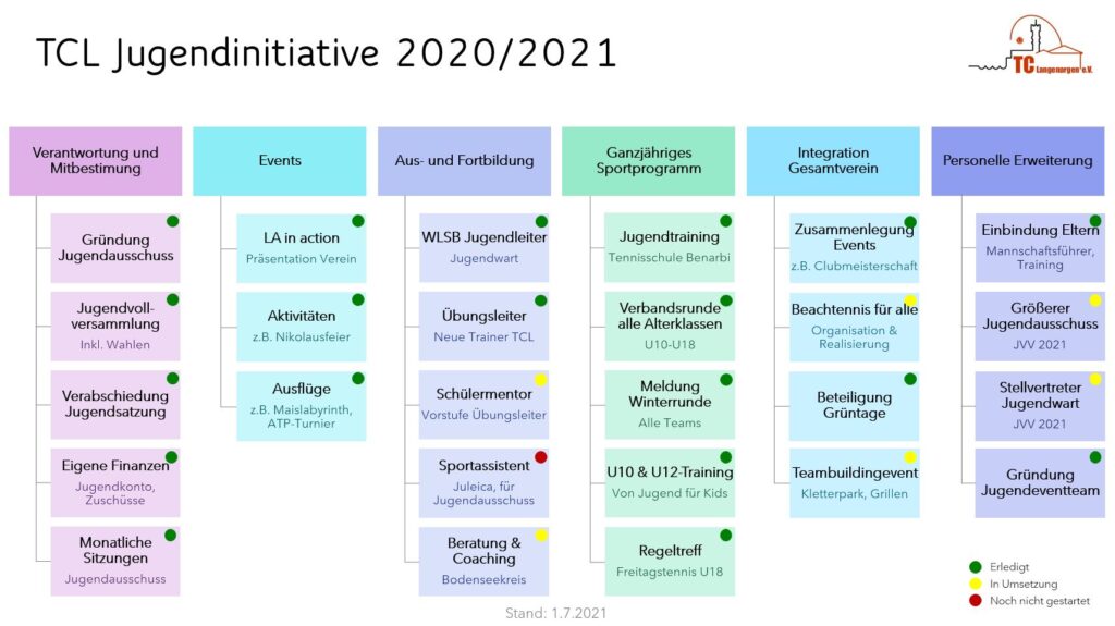 Im Rahmen der Jugendinitiative 2020/2021 wurden folgende Bereiche neu definiert bzw. erweitert: