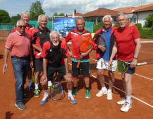 Herren 70-1 im Jahr 2022, v.l.: Dieter Haase, Jochen Ballerstaedt, Wolfgang Kallina, Lothar Truoel, Adi Haintaler, Frank Müller-Thoma und Frank Bayer (nicht auf dem Foto Otto Merle und Reini Miller)